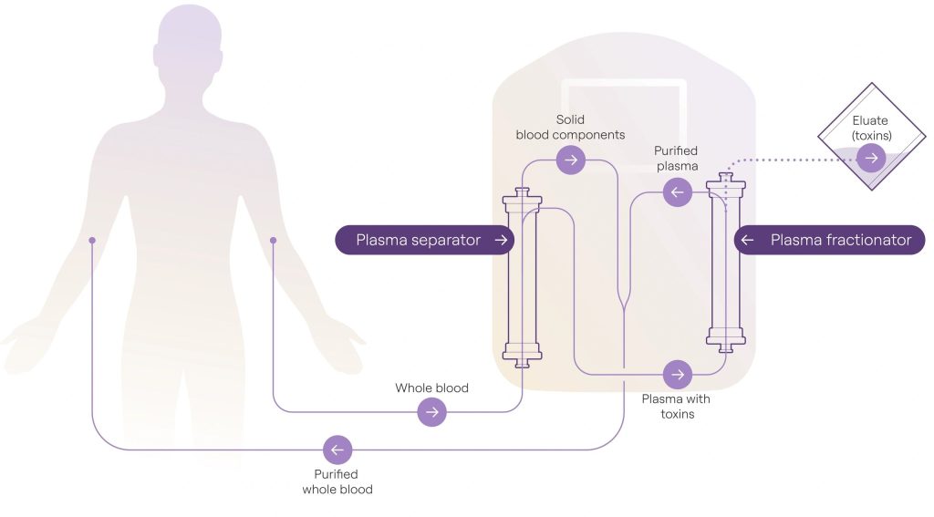 Процедура похожа на простой аферез плазмы, но более целенаправленна. Во время лечения: